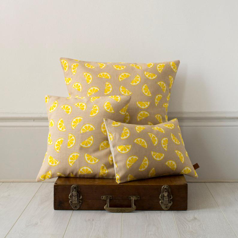 Ce coussin de citrons ferait un ajout plutôt jolly à n’importe quel ménage. Sérigraphié sur Oxford lin dans la conception de citrons de Jenny, il est vif, fruité et accrocheur !